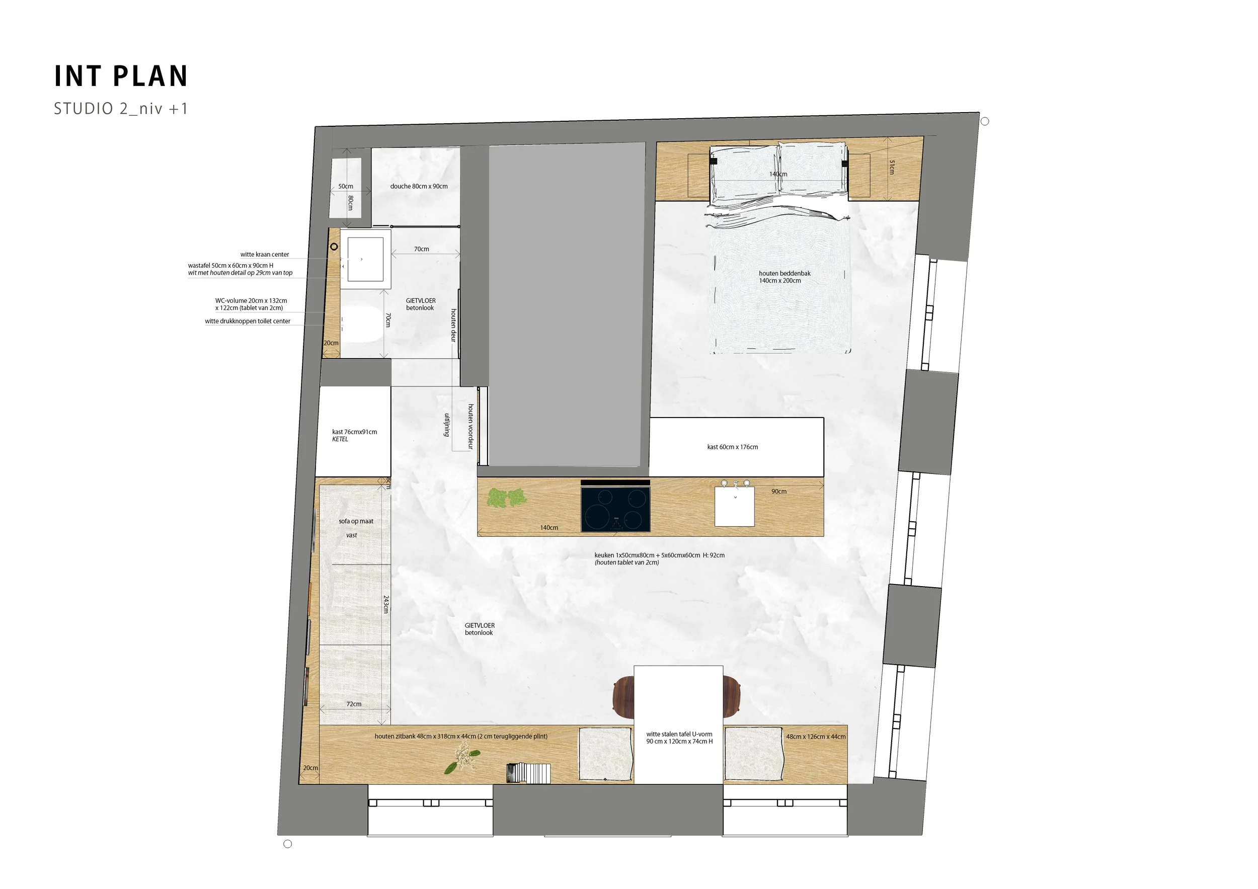 Renovation of a classified historical house in the old centre of Antwerp. For the architectural part of this project we aligned with the Monument Department, as well as for some interior aspects. We created 3 studios with made to measure furniture to maximise the use of space.
